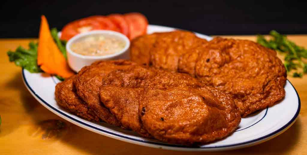 Minced Tuna fish cooked with spices, egg , flour and served with cucumber & peanut sauce