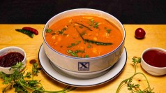 Sliced chicken, prawn,mushroom & ginger/ chili tomato puree for thick soup