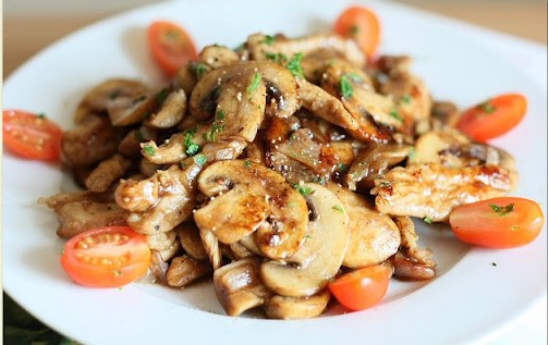 Thin sliced Chicken prepared with mushroom, egg & green chili sauce