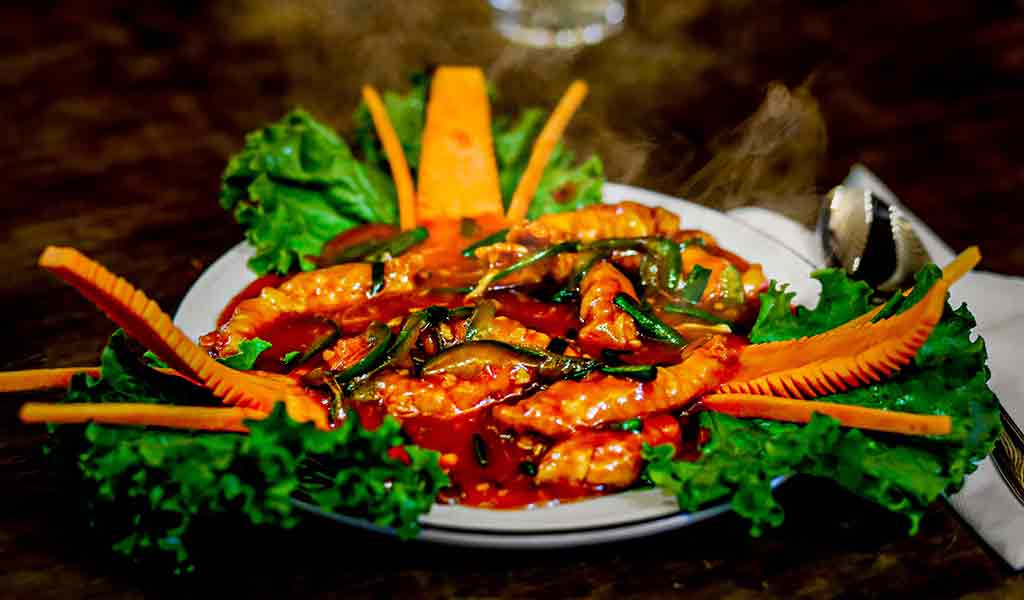 Boned chicken cooked with garlic, onion, carrot, sweet & sour sauce