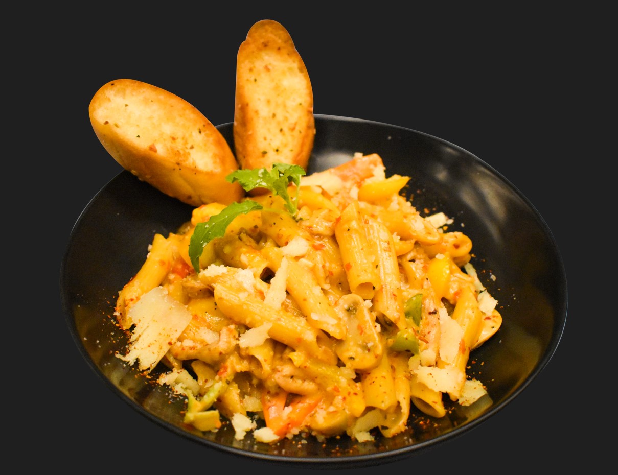 [324] SPICY CREAMY PASTA (CHICKEN/PRAWN) OR PASTA ALFREDO WITH CHICKEN & VEGETABLES