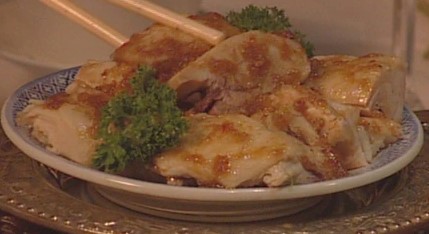 Steamed sea fish prepare with mushroom, ginger & white sauce