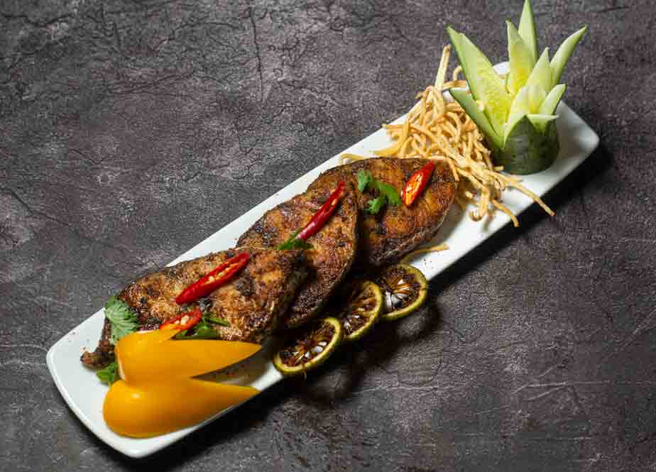 Pomfret cooked with capsicum, onion, carrot & hot chili sauce