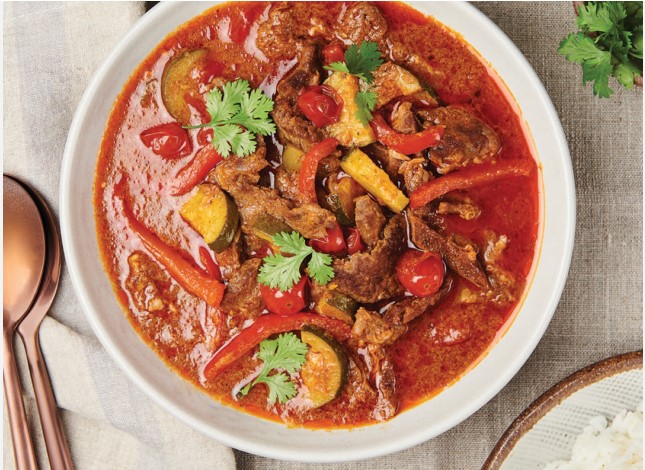 Sliced beef prepared with Thai red curry sauce & capsicum
